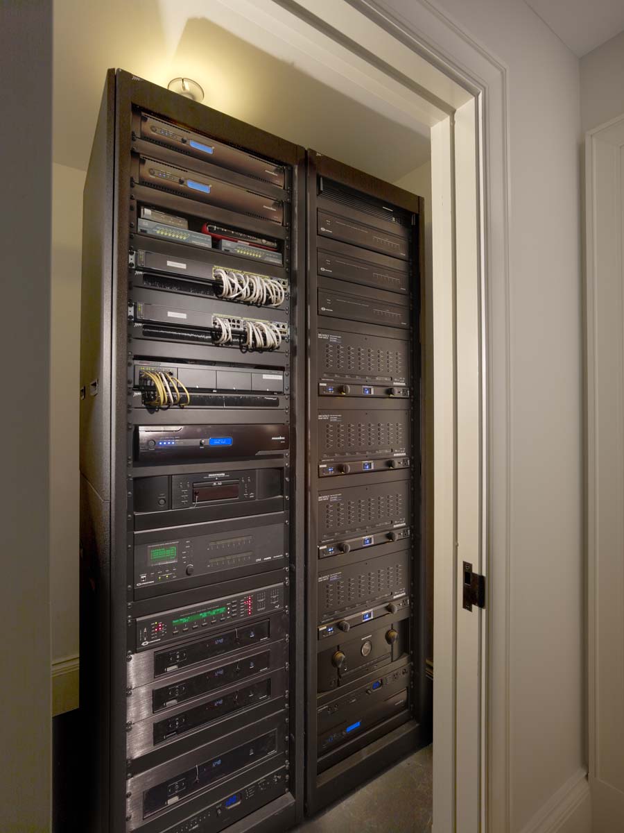 Of course the team included a property-wide audio and video distribution system as well, with loudspeakers in almost every room and televisions in many rooms as well. Crestron DigitalMedia and multi-room audio products made that possible. The distances that the signals travel are immense, so Elite Home Technologies installed roughly 15,000 feet of fiber-optic cable to serve the entertainment systems.