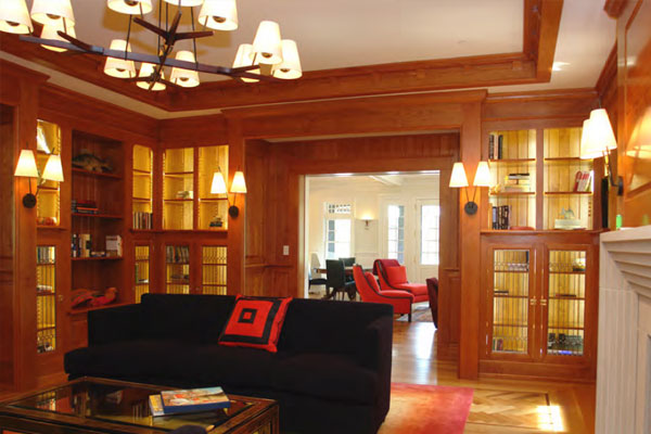 The art gallery holds valuable pieces of artwork. The homeowners host art shows for friends and business associates, often inviting experts from around the world to lead discussions on the works lining the gallery walls. Because the homeowners rotate pieces in and out of the gallery on a regular basis, the space required a complex lighting installation, with fixtures they can move and reset to fit their changing needs.
